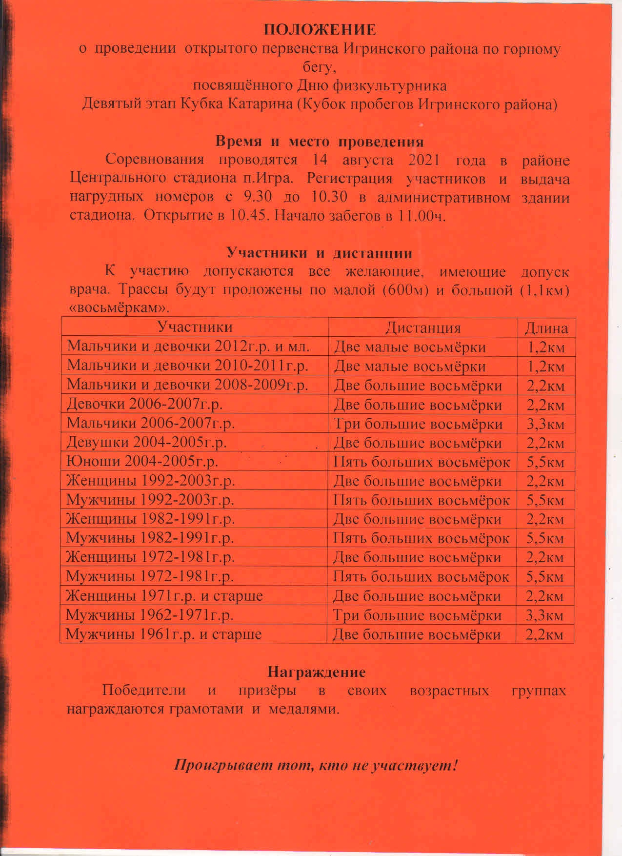 Серия забегов: Открытое первенство Игринского района по горному бегу