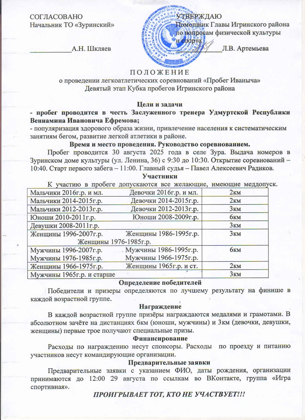 Серия забегов: Открытые районные соревнования по кроссу «Пробег Иваныча». Этап Кубка Катарина (Кубок пробегов Игринского района)