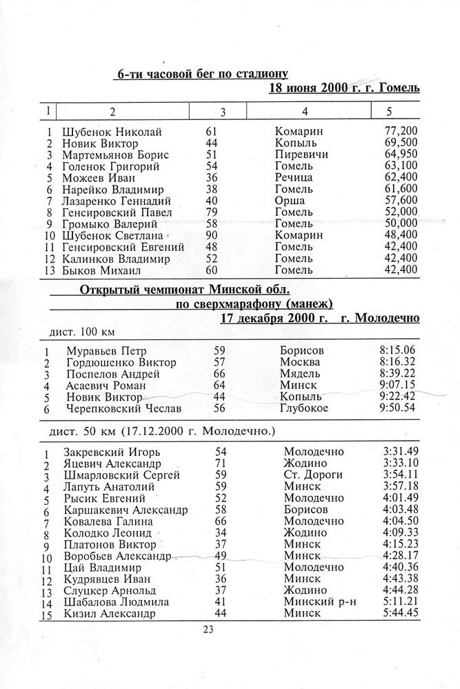 Источник информации: Инф.сборник "Бегуны Беларуси" №11